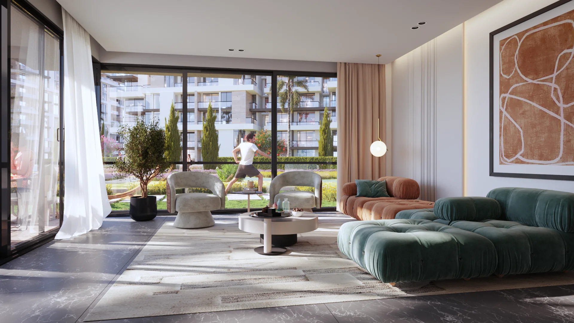 - شقق سكنية تحتوي على غرفة نوم واحدة، بتشطيبات داخلية راقية.